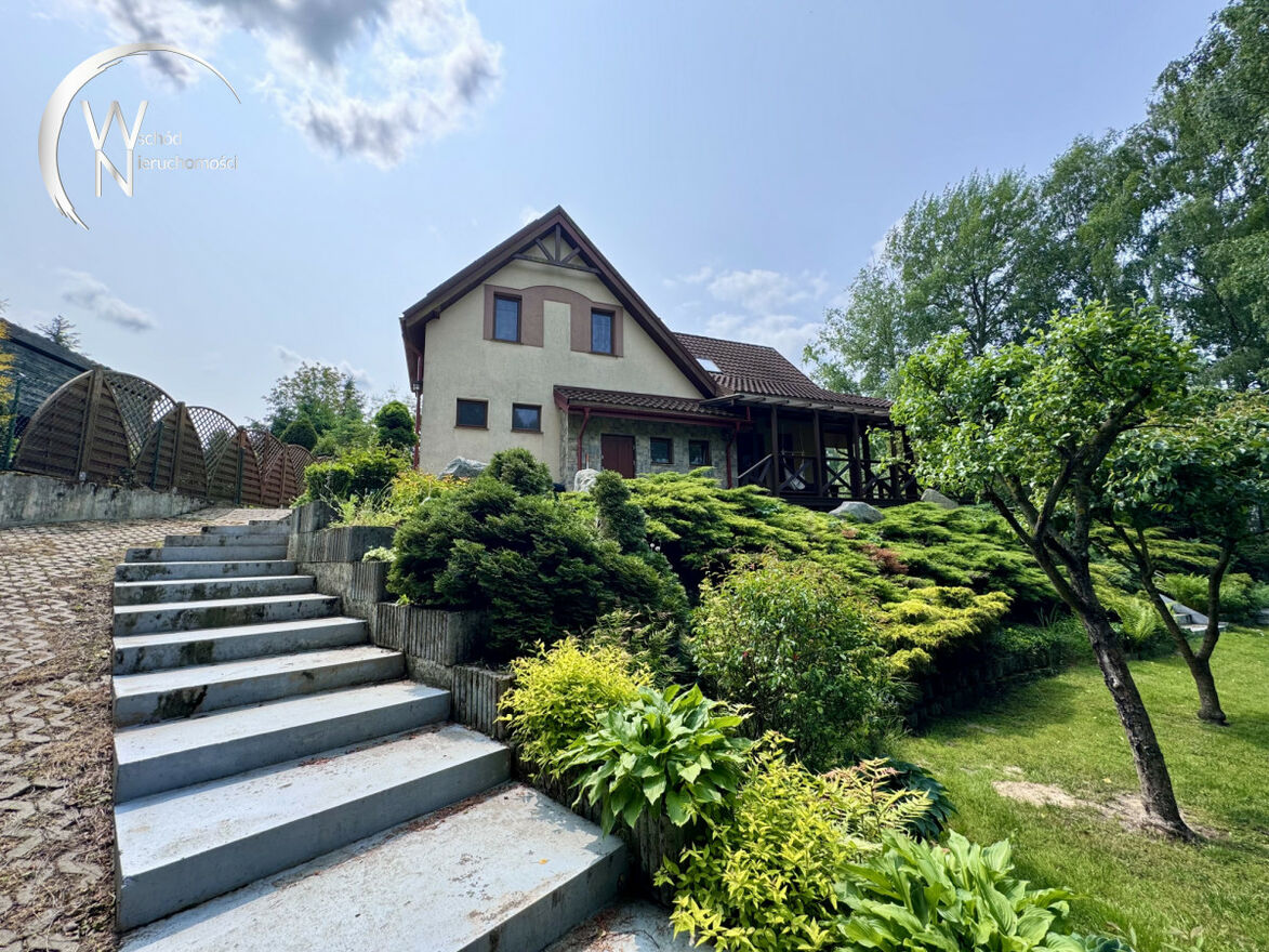 Pięknie zagospodarowana działka z wieloletnim ogrodem położona jest na delikatnym tarasowym wzniesieniu, co zapewnia prywatność oraz wyjątkowy klimat dzięki dorodnym drzewom i zieleni. Nieruchomość wyposażona jest w: